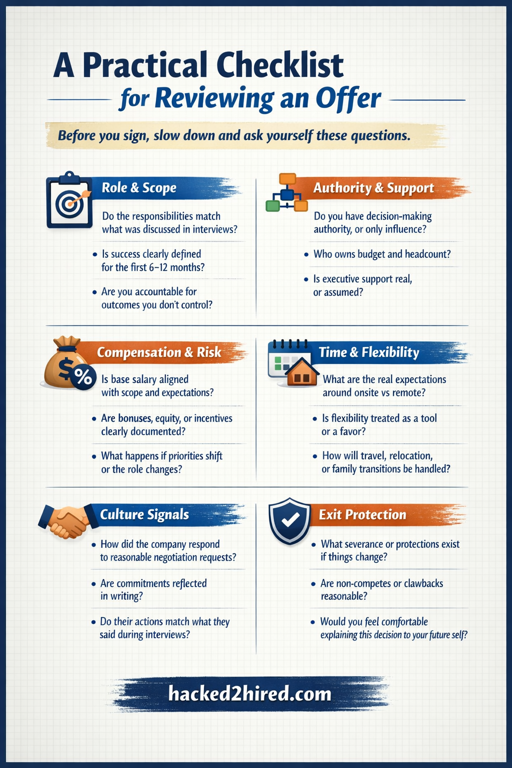 After a layoff, offers hit differently. There’s gratitude, urgency, and a strong desire not to rock the boat. You don’t want to jeopardize something you worked so hard to get. That emotional state makes it easy to focus narrowly on salary and miss bigger issues that will matter every single week once you start.